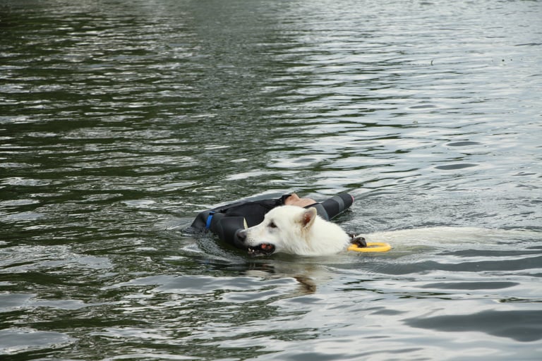 Chaque entraînement renforce le lien entre le chien et son conducteur tout en valorisant les aptitudes naturelles de nos compagnons dans l’eau.